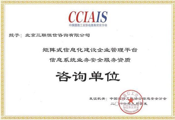 Beijing sanlian hengxin consulting co., LTD., is registered with the administrative department for industry and commerce, approved by the state for the record of the ISO certification consultancy, approved scope: quality management system certification consulting, environmental management system certification consulting, occupational health and safety management system certification consulting, automotive industry quality management system certification consulting, energy management system certification consulting, etc. Approval no. :